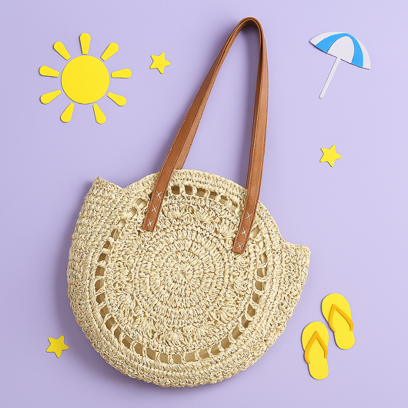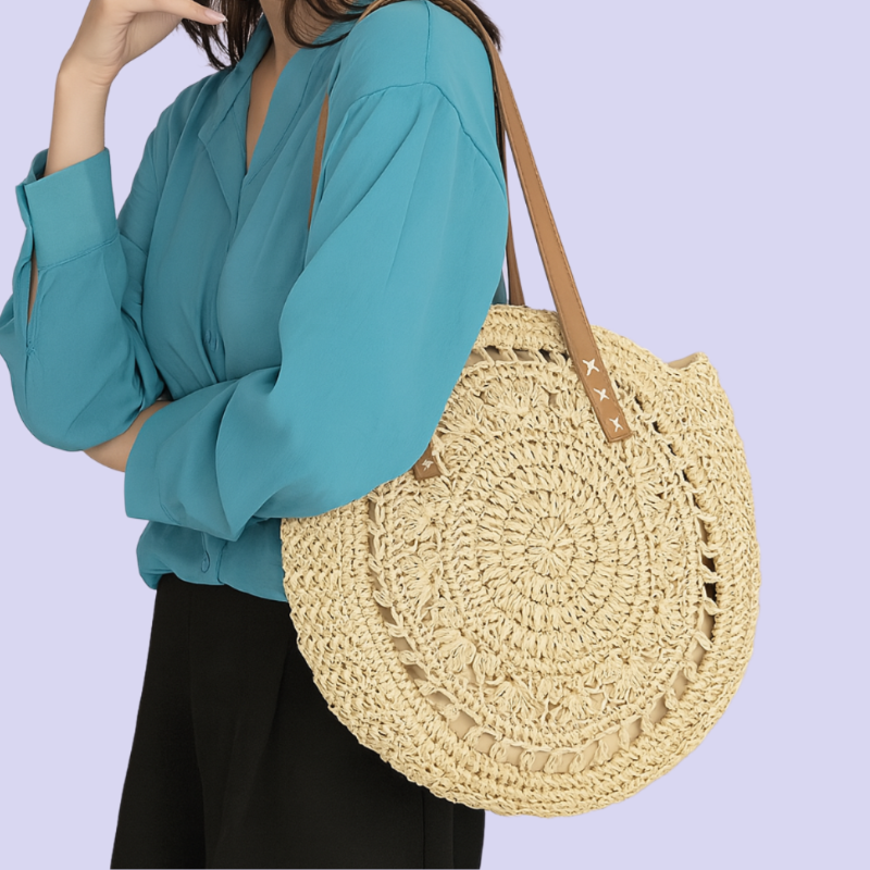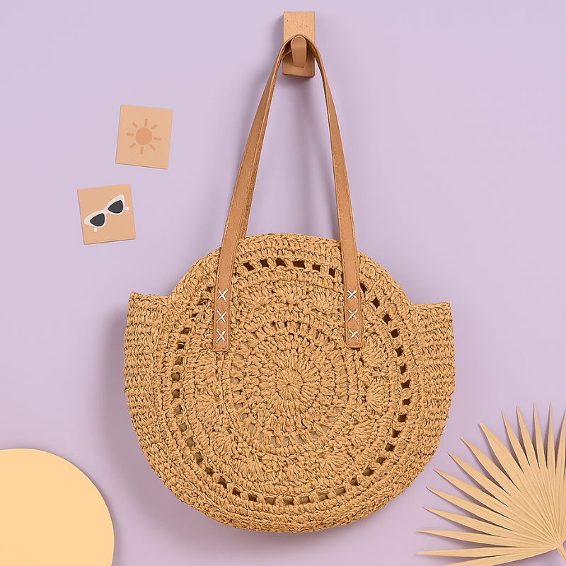 Léger et spacieux, Solara est le sac rond en paille parfait pour vos journées ensoleillées. Son tressage ajouré, sa grande capacité et sa bandoulière confortable en font l’allié idéal des escapades estivales entre style, simplicité et liberté.