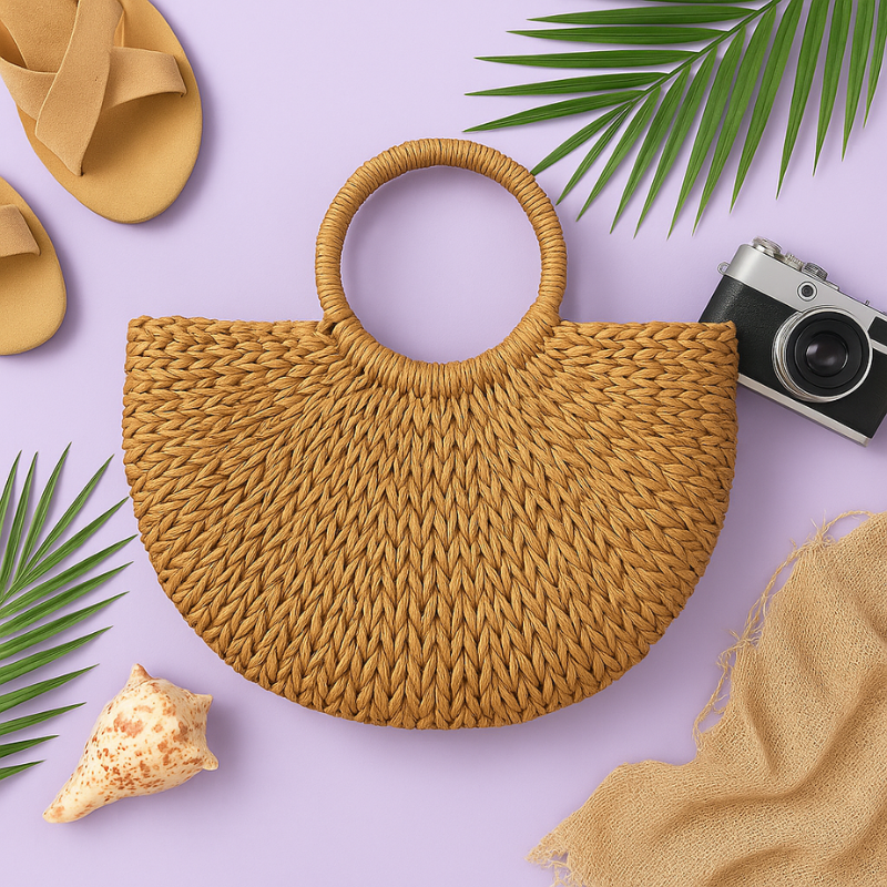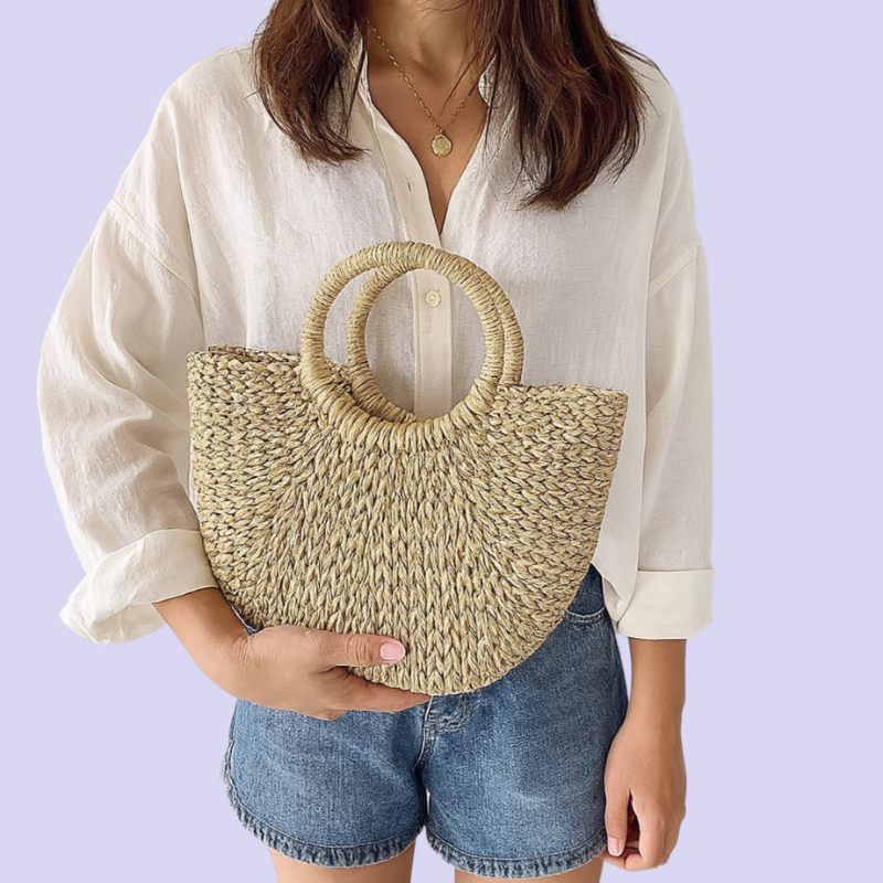 Avec sa forme demi-lune et ses anses rondes tressées, Palma est un sac à main à l’allure solaire. Léger, structuré et 100 % estival, il se porte avec naturel et style, du marché du matin à l’apéro en bord de mer.